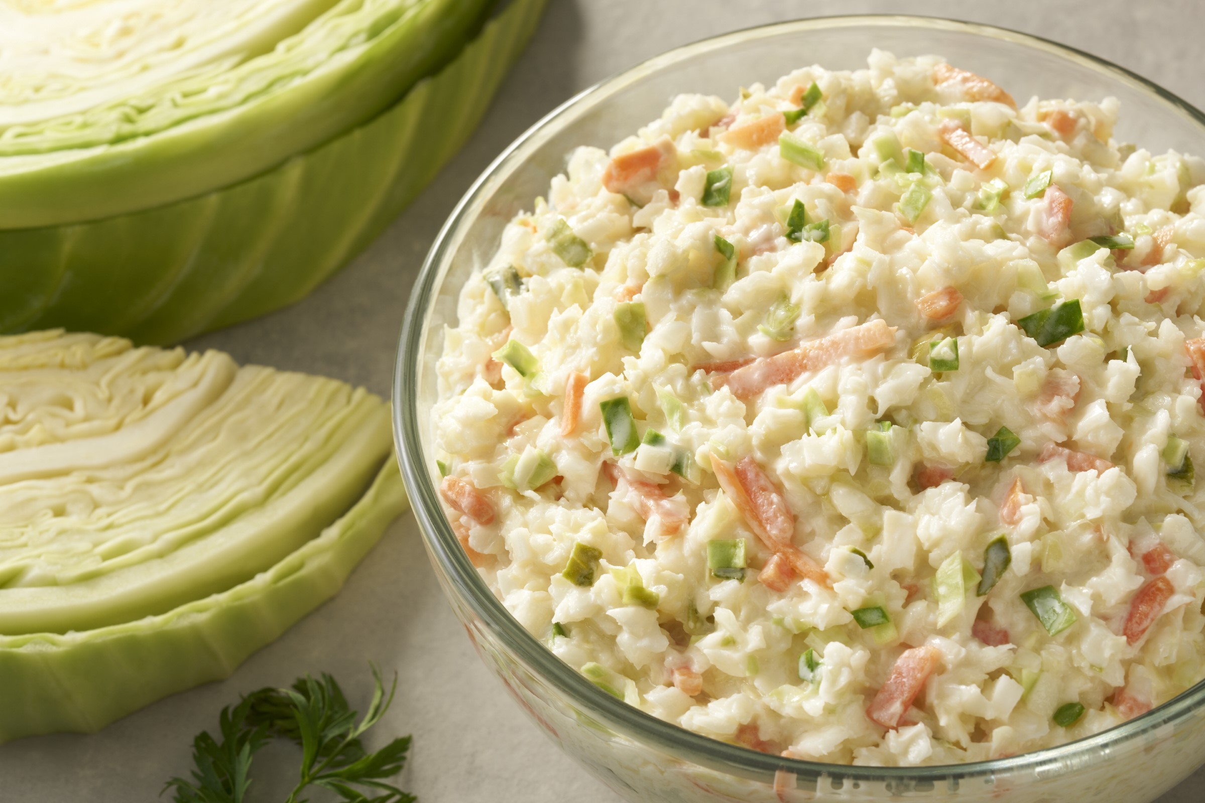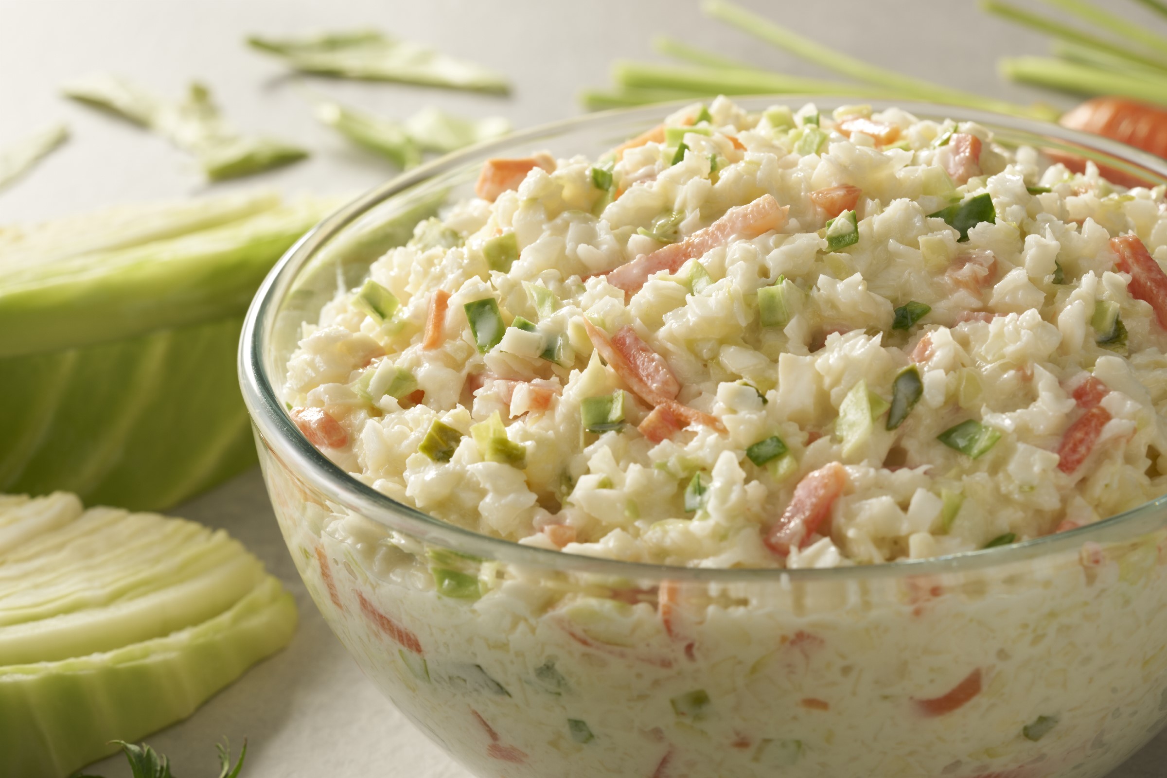 CABBAGE, SOYBEAN OIL, FRUCTOSE, SUGAR, CARROTS, CONTAINS LESS THAN 2% OF SALTED EGG YOLKS, HIGH FRUCTOSE CORN SYRUP, WHITE DISTILLED VINEGAR, MUSTARD (WATER, DISTILLED VINEGAR, MUSTARD SEED, SALT, SPICES), SALT, PEA FIBER, ERYTHORBIC ACID (TO RETAIN COLOR), WATER, POTASSIUM SORBATE (TO PREVENT SPOILAGE), NATURAL FLAVORS, SODIUM ACID SULFATE, CITRIC ACID, XANTHAN GUM.